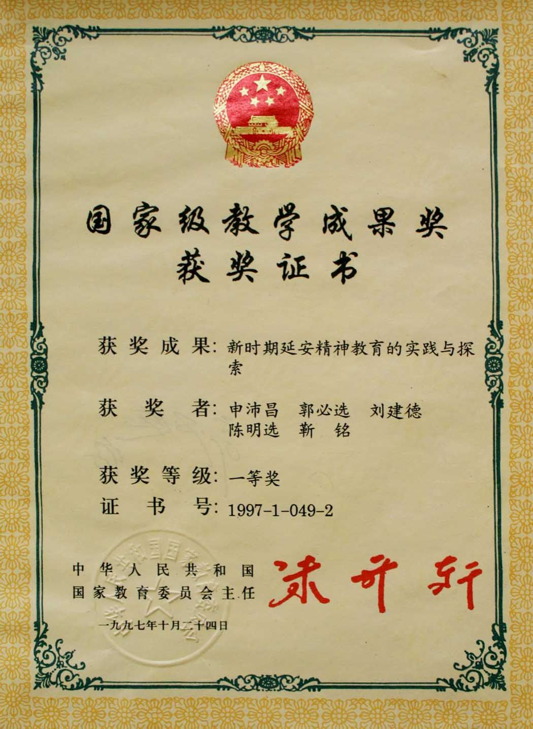 新时期延安精神教育的实践与探索——国家级教学成果奖一等奖