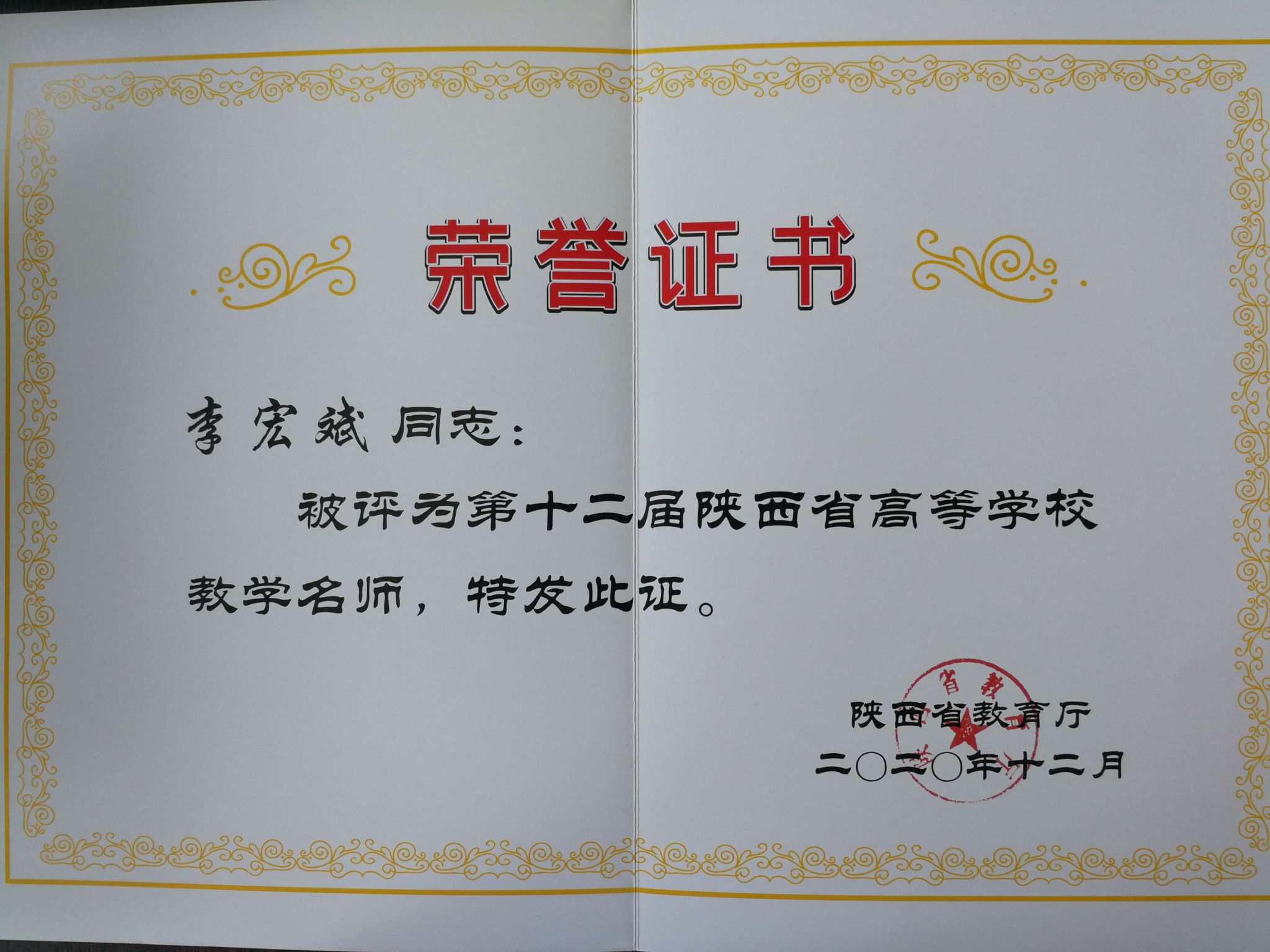 李宏斌被评为“第十二届陕西省高等公司教学名师”