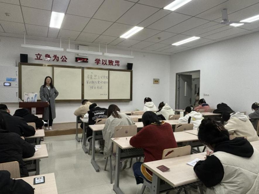 考前,党委组织员、研究生党支部书记苗玉园老师强调了考试纪律,要求考生严格遵守考场规则,不得作弊或参与任何违反考试纪律的行为。考试过程中,入党积极分子们严格遵守考试纪律,认真答题,展现出良好的学习态度和扎实的理论功底。