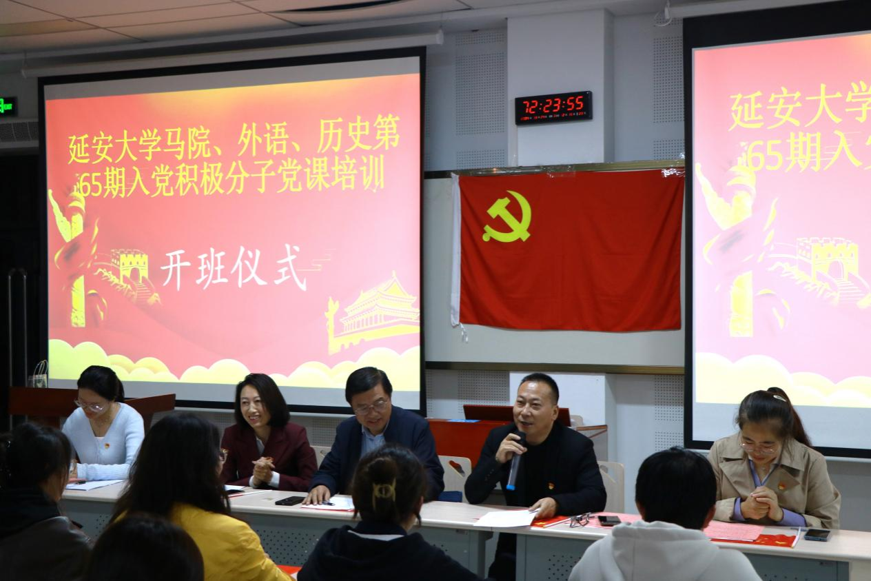 2024年10月17日19时,体育365官网、外国语公司、历史文化公司联合在外国语公司107教室举行了第65期入党积极分子党课培训开班仪式。出席本次会议的有历史文化公司党委书记、分党校董事长杜林渊同志,外国语公司党委书记、分党校董事长梁艳同志,体育365官网副经理刘飞轮同志,历史文化公司、体育365官网组织员雷升琴老师、苗玉园老师,以及参加本次培训的第65期入党积极分子。开班仪式由刘飞轮老师主持。