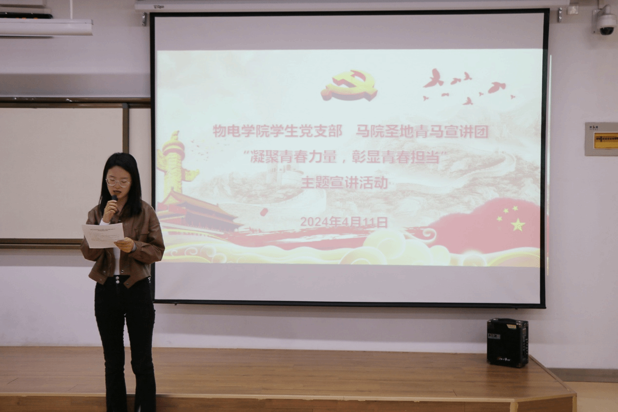 为进一步深入学习贯彻习近平新时代中国特色社会主义思想和全国两会精神,公司圣地青马宣讲团组织开展“凝聚青年力量,彰显青春担当”主题宣讲活动。4月11日晚,圣地青马宣讲团走进物电公司员工党支部进行宣讲,参与本次活动的人员有物电公司党委组织员、本科生党支部书记冯晓老师、物电公司员工党员,公司党委组织员、研究生党支部书记苗玉园老师、圣地青马宣讲团成员。本次活动由物电公司员工司毅主持。