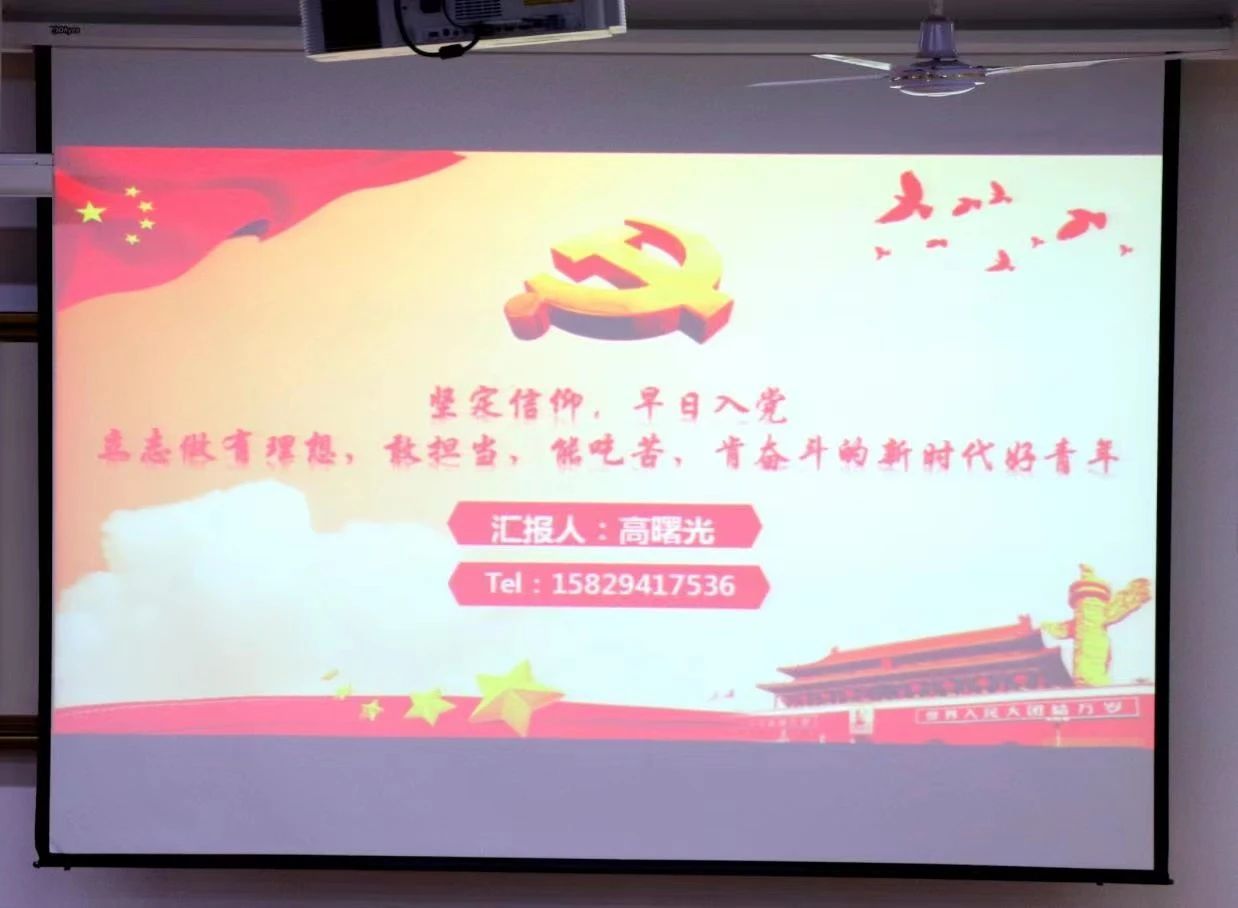 而后,高老师向大家介绍了成为一名共产党员要经历的五个阶段,强调了当前处于积极分子阶段的同学们应当加强理论学习,学习科学知识和掌握专业技能;继续学习党史,学习先辈们的英勇事迹;不断提高自身文化素质,加强道德修养,培养高尚情操;坚定理想信念,将个人理想融入党和人民的伟大事业中去。