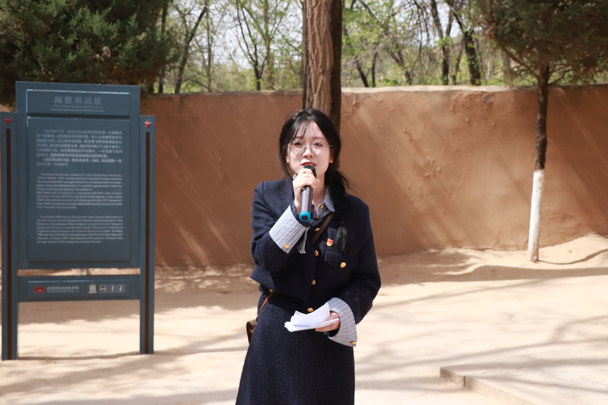 为了增强全体员工党员对枣园革命旧址的认识和了解,更好地领会枣园革命旧址所承载的丰富历史内涵和宝贵革命精神富,主持人在入口处对枣园革命旧址的历史背景做了详细介绍,让同志们了解枣园革命旧址在革命历史中的重要地位。