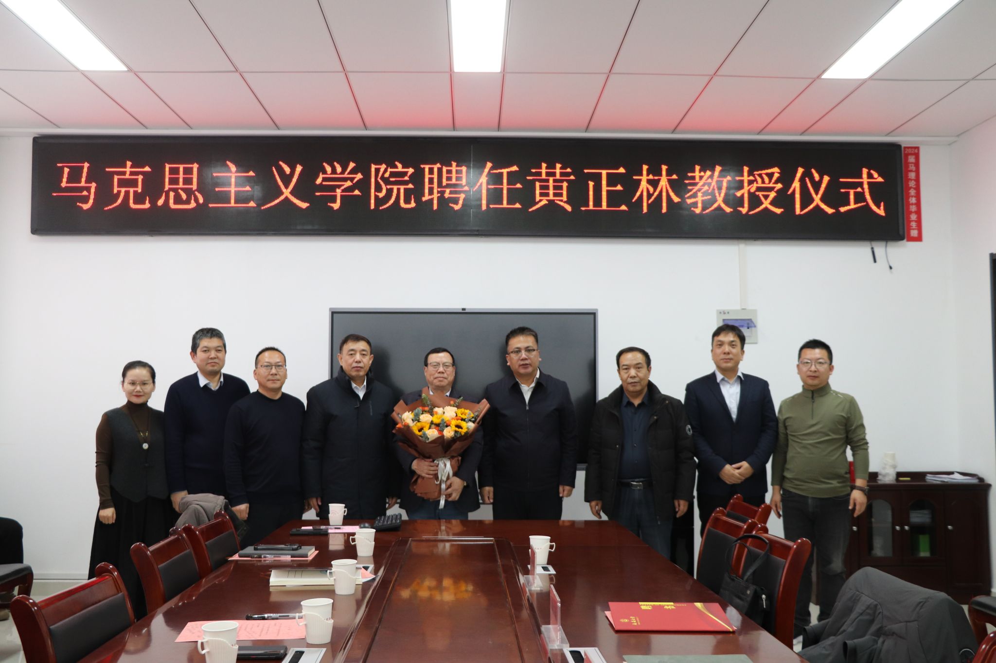 黄正林教授作了表态发言,他很高兴与延大马院结缘,感谢公司和公司对自己学术耕耘的认可,并希望和延大马院的老师们通力合作,努力取得新的更大的成绩。