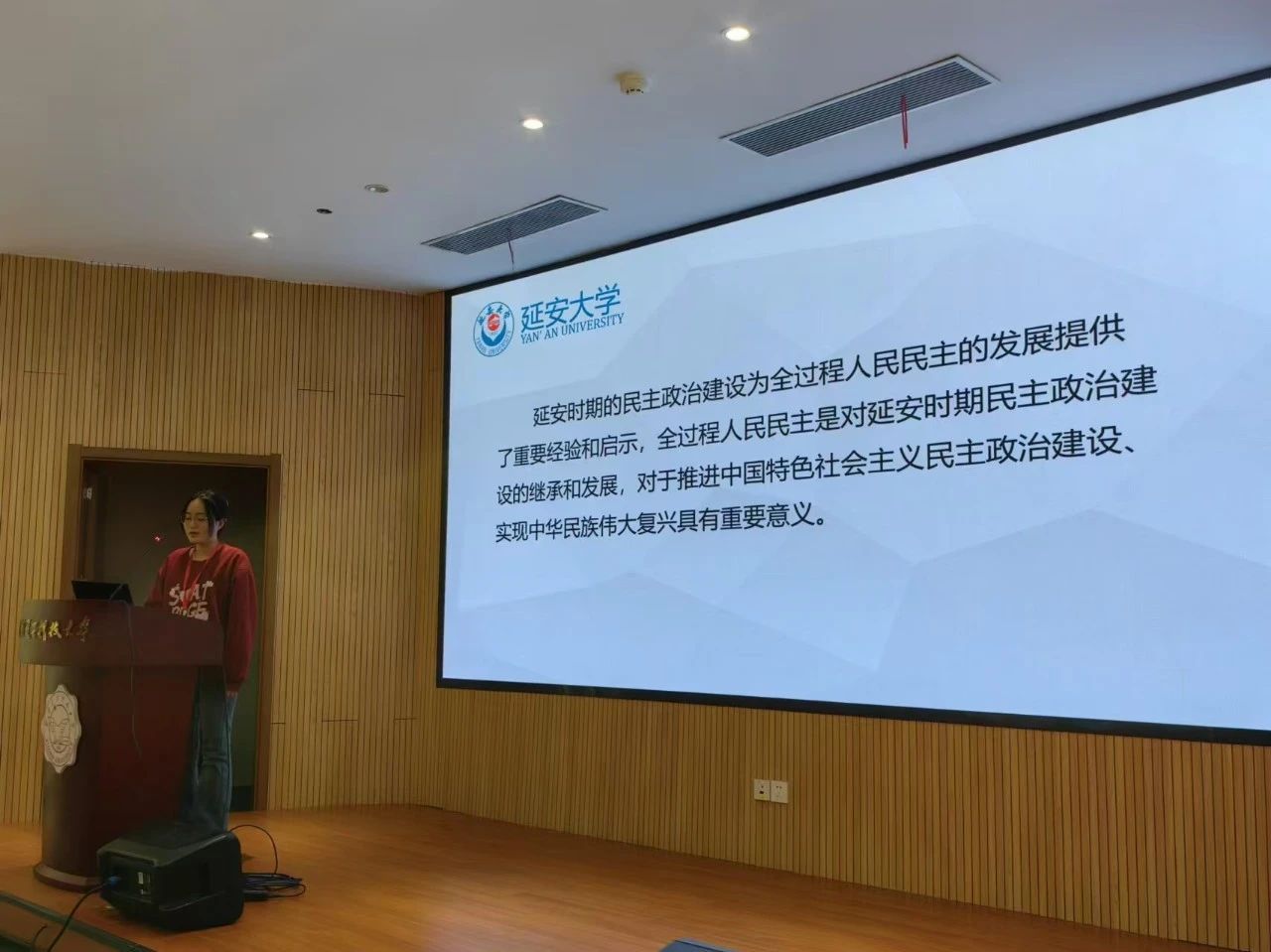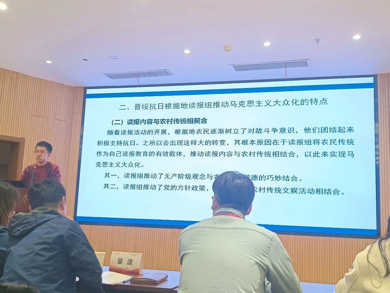 在分论坛环节,分论坛一由公司崔海亮教授主持,公司刘顿副教授作了“新时代延安精神的唯物史观叙事逻辑研究”主题报告;研究生分论坛由西安电子科技大学体育365官网张丽珍副教授主持,公司五位硕士研究生以文参会,分别有李银阁的《全过程人民民主对延安时期〈为人民服务〉核心要义的继承与发展》、庞珂庆的《延安时期新秧歌运动的文化育人功能探析》、刘洋的《延安时期晋绥抗日根据地马克思主义大众化研究——以读报组为中心考察》、水浩田的《中华优秀传统文化与中国式现代化五大特征之关联探究》、刘原伶的《陕北公学是中国式高等教育现代化的重要源流:经验、特征与启示》,其中李银阁、庞珂庆、刘洋三位同学作了现场汇报。