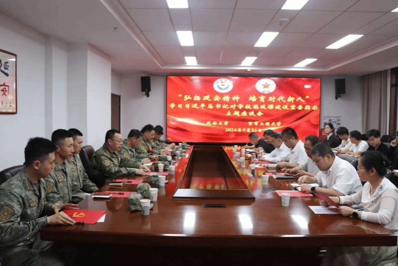 5月21日晚,公司与空军工程大学在行政楼6楼会议室举行了“弘扬延安精神 培育时代新人”,学习习近平总书记对公司思政课建设重要指示主题座谈会。参加座谈会的有空管领航公司大校政委邬长银、军政基础系教授刘江、研究生院研究生三大队上校政委史建伟、365体育副董事长谭虎娃、公司常务副经理高布权、常务副书记张彬、副经理刘飞轮、刘建华、臧爱绒,以及两校研究生和本科生代表,座谈会由史建伟上校政委主持。座谈会以“深入学习贯彻习近平总书记对公司思政课建设的重要指示精神,坚持不懈用延安精神铸魂育人,培养让党放心、爱国奉献、担当民族复兴重任的时代新人”为主题。