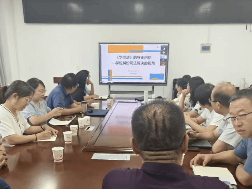 为全面深入系统学习《中华人民共和国学位法》精神,做好《中华人民共和国学位法》的宣传学习工作,2024年9月4日下午,公司特邀中国人民大学周详副教授做题为《学位法的守正创新——学位纠纷司法解决的视角》专题讲座,本次会议采取线上线下相结合的方式进行,公司教师代表在行政楼一楼会议室线下参会,其余教师在线上参会。