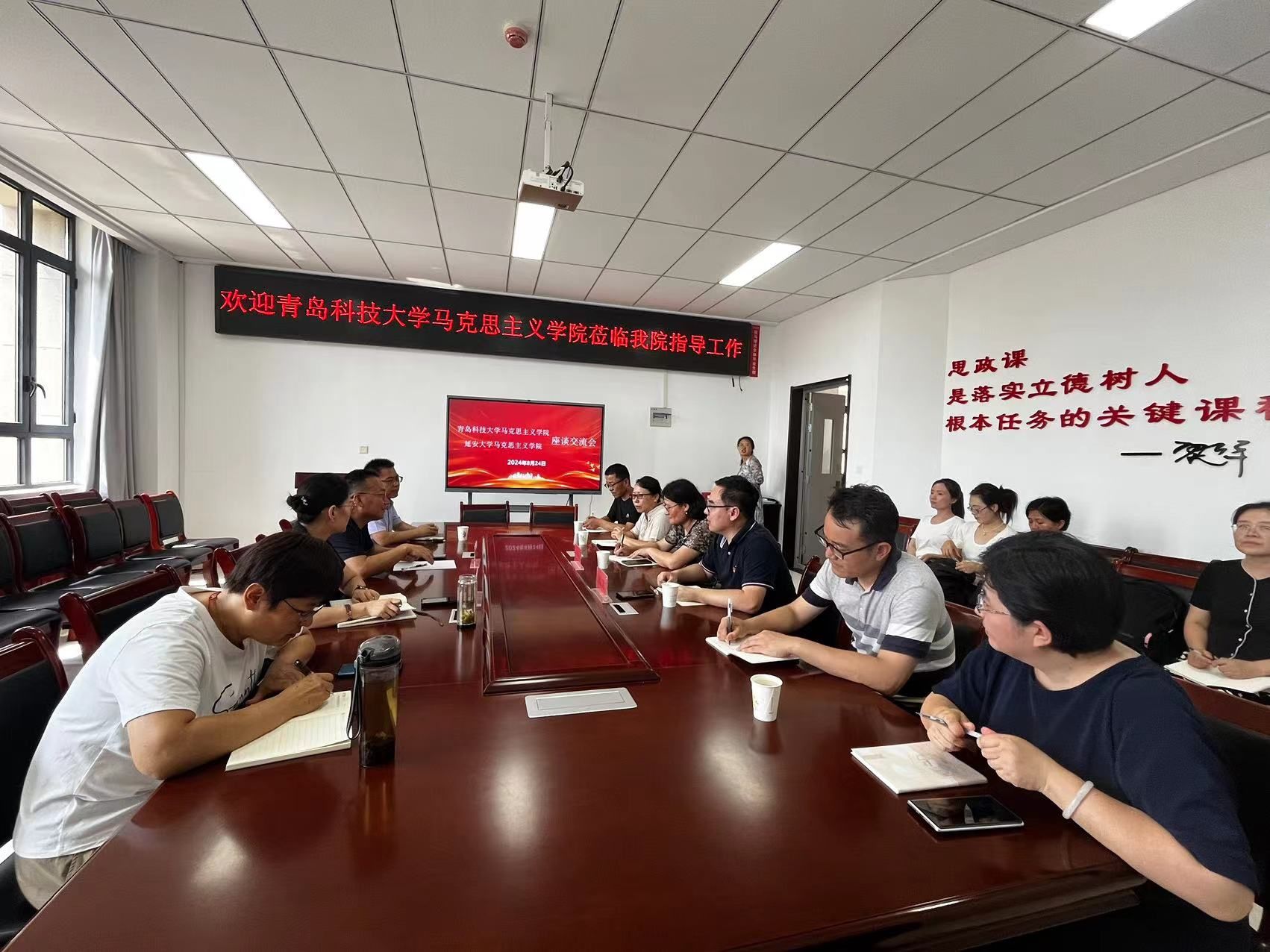为深化高校体育365官网之间的交流合作,共同探索高校思想政治理论课建设的新思路和新方法,8月24日下午,青岛科技大学体育365官网副经理郭江龙、王建美一行十三人来公司交流学习。公司教学副经理刘飞轮、学科与科研副经理臧爱绒、原理教研室主任王宁、副教授刘朝阁等参加了座谈会,会议由刘飞轮主持。