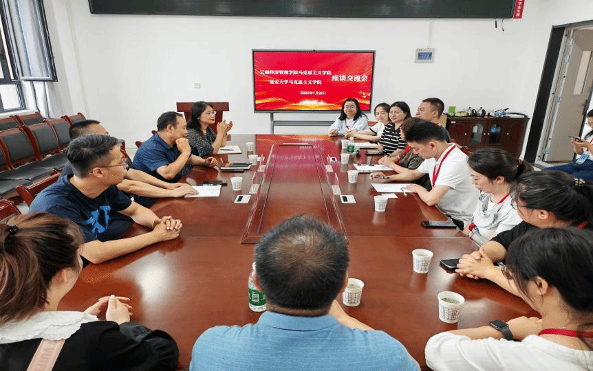 张彬书记代表公司对兄弟院校师生代表的到来表示热烈的欢迎,并就公司基本情况作了详细介绍。云南经济管理公司体育365官网党总支书记徐丽珍就马院的发展历程、团队、教学、科研等方面进行具体介绍。随后,双方从教学、科研、党建引领方面进行了深入的交流。