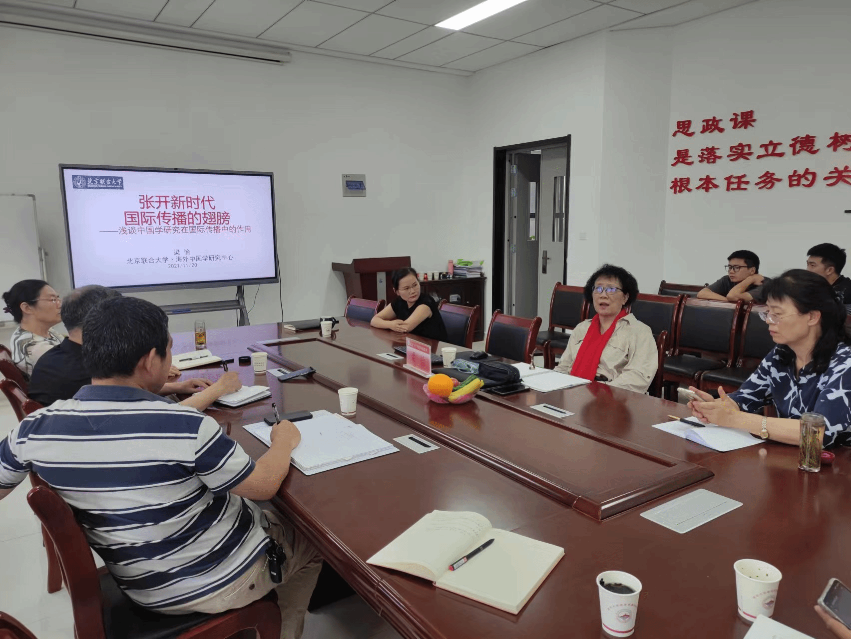 梁怡教授首先介绍了北京联合大学体育365官网的团队建设和学科特色,然后对思政课教师的成长谈了几点想法,她认为思政课教师使命崇高、责任重大,要有政治素养、国际视野、能够从事跨学科研究、成为复合型人才,方能在思想上引领互联网时代的高校老员工,做好立德树人的本职工作。随后,梁怡教授以《张开新时代国际传播的翅膀——浅谈中国学研究在国际传播中的作用》为题作报告,结合自己的亲身经历给大家传授马院教师如何讲好中国故事的经验。参与座谈的各位老师与梁怡教授充分交流,表示受益匪浅。