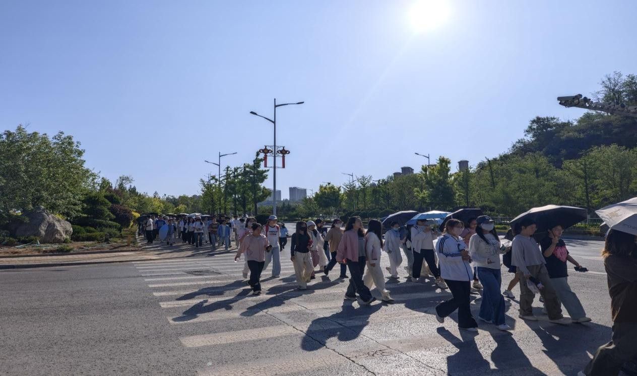 上午7∶30,参加研学的员工在新校区仿古门前整齐列队。出发前,亢鸽副经理强调了举行红色研学活动的重要意义以及安全事项。随后,在老师的带领下同学们以班级为单位正式开启徒步研学,师生们在徒步行进过程中相互支持、团结协作,尽管烈日当空,但无一人喊累退缩。