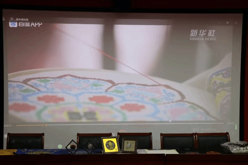 活动第二项,活动举办人向同学们展示“城固架花”非遗传人的采访录像,并播放延大“拾筑”团队实地探索学习的视频,以此深化员工对城固架花工艺的认识。