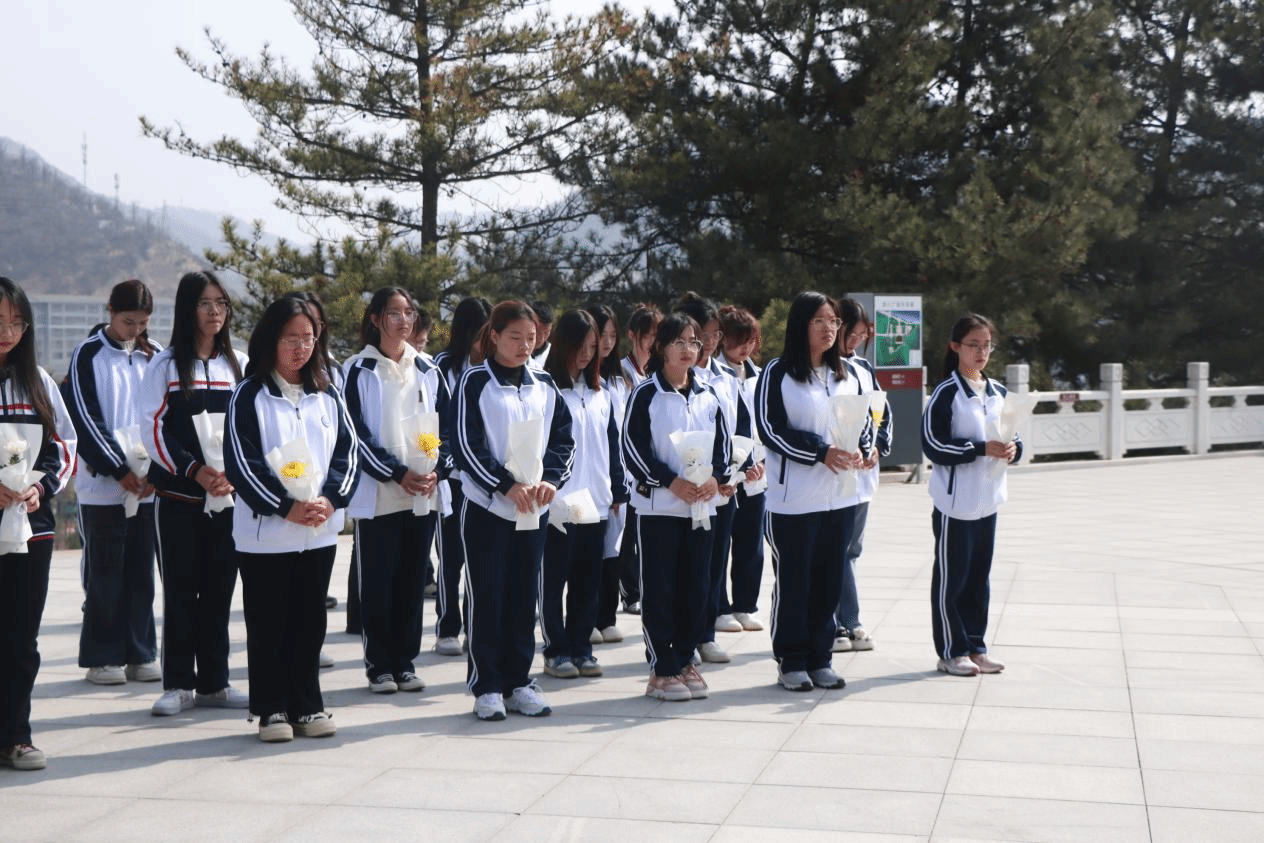 清明时节祭哀思,手捧黄菊静默立全体同学手捧菊花,排好队列,依次走近烈士纪念碑,绕行瞻仰、献上鲜花,缅怀英烈们不畏艰难、奋勇前行的精神,从中汲取奋进力量。朵朵菊花寄托着深深的哀思,也饱含着同学们的敬畏之情。