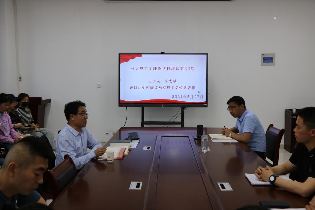 5月27日晚,体育365官网在三楼会议室特邀李宏斌教授作关于如何阅读马克思主义经典著作的报告。
