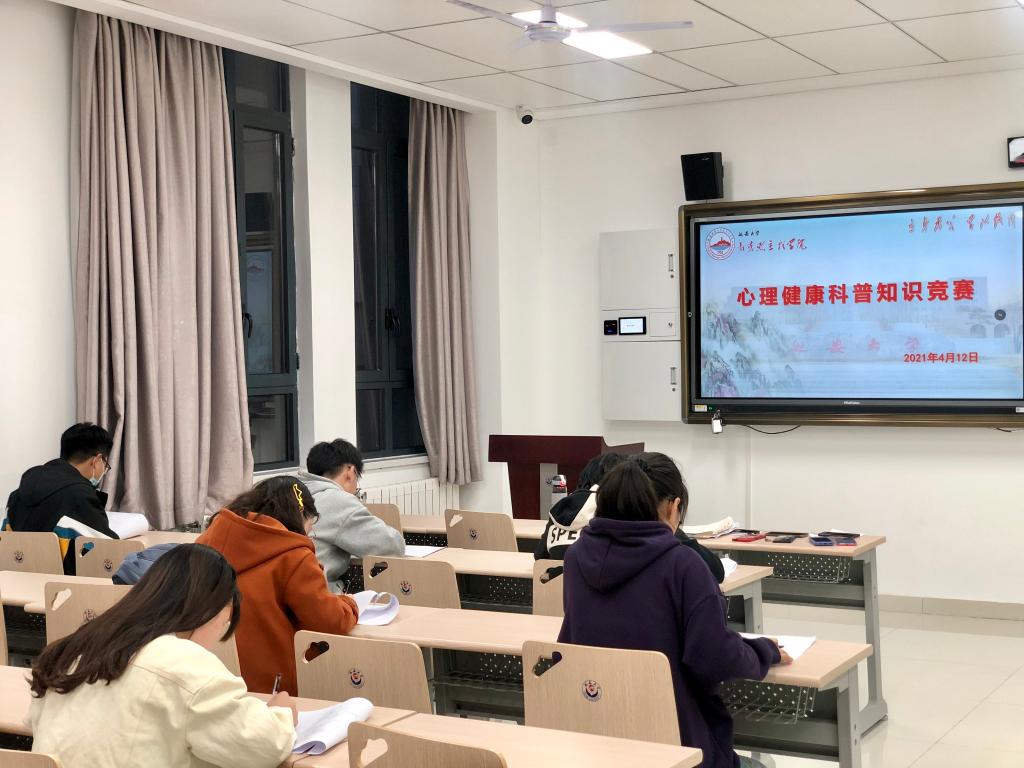 为了进一步宣传心理健康知识,丰富心理健康科普知识内容,提高员工心里适应能力,全面构建心理育人体系。体育365官网于2021年4月12日晚在202教室举办心理健康科普知识竞赛。考试试卷发下去,参赛选手立即奋笔疾书、埋头答题。一个小时左右,参赛选手陆续交卷,经过评委认真核分后,第三组:张璐娜、侯悦、訾淑慧脱颖而出,将代表公司参加校级比赛。
