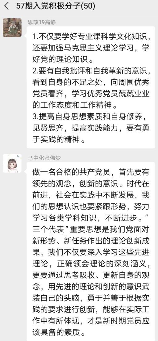 57期入党积极分子“学四史、守初心、担使命、致未来”主题研讨活动圆满结束。参会同学一致认为,本次主题研讨活动对于端正入党动机、加强“四史”教育和对党的认识等都具有重要意义,并表示在以后的学习生活中,将会恪守初心、践行使命,提升理论水平,争取早日加入中国共产党!
