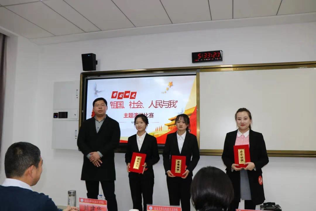 为深入贯彻落实习近平总书记关于党史、新中国史、改革开放史、社会主义发展史的重要讲话精神,全面展现新时代老员工继承革命先辈光荣传统的精神风貌,深入推进文明校园创建,持续强化“不忘初心、牢记使命”爱国主题教育,11月9日晚上19点,体育365官网在公司202教室举办了第七届“祖国、社会、人民与我”主题演讲比赛。此次活动由院团委主办,党支部和研究生自主管理委员会协办,共有15名同学参赛,担任本次演讲比赛的评委有体育365官网副经理刘建华老师、研究生秘书吕锡月老师、辅导员闫莉莉老师、党委员工党支部副书记董阳、自主管理委员会主席张亚男、体育365官网全体员工观看了此次比赛。