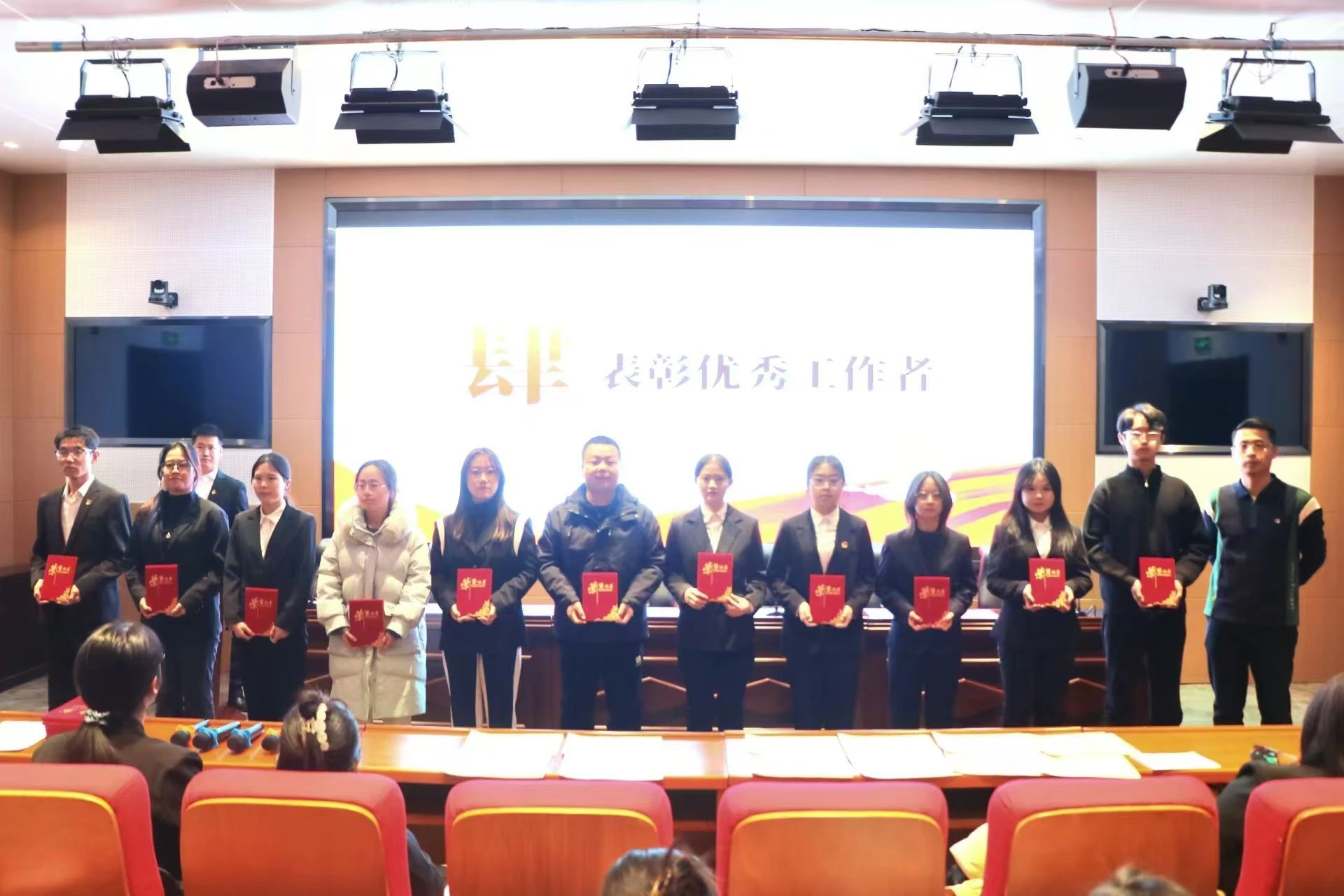 为加强员工干部队伍建设,推动员工组织工作开新局,公司于2024年12月24日下午在图书馆一楼报告厅举行员工组织换届暨表彰大会。参加本次大会的有团委书记郭忠義老师以及公司研究生、本科生员工组织全体成员。本次大会由团委书记郭忠義老师主持,共分为八项进行。