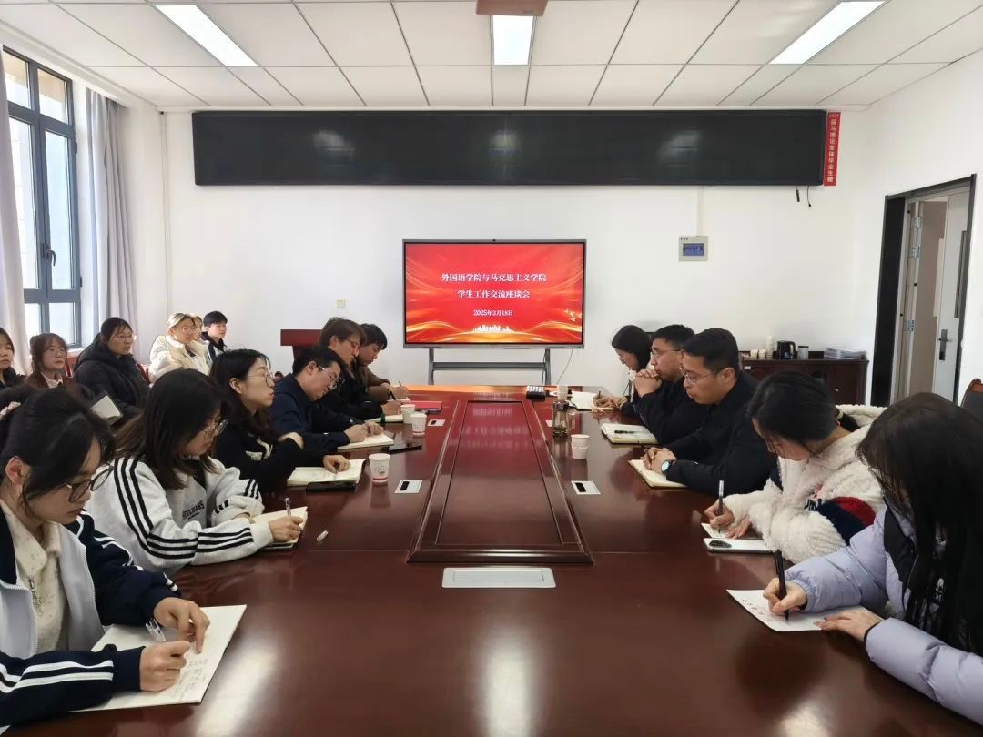 2025年3月18日,外国语公司与体育365官网联合举办员工工作协同发展交流会,围绕“思政教育创新”、“学科实践融合”、“跨院协同发展”等主题展开深度研讨。两院领导、教师代表及员工骨干共聚一堂,通过经验共享、合作展望等形式,凝聚育人共识,共同擘画育人新图景。