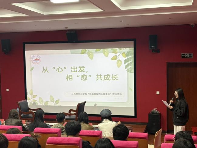 在青春洋溢的校园里,有这样一群默默奉献的身影,他们是心灵的守护者,用温暖与关怀陪伴着同学们成长,他们就是心理委员。4月8日晚,“我最喜爱的心理委员”评选活动在公司一楼报告厅暖心开启。本次活动特邀心理健康专业研究生郑丽、段莹莹,公司员工代表侯海森、刘佳佳、余虹丽担任评委,活动由24级研究生曹文瑾主持。