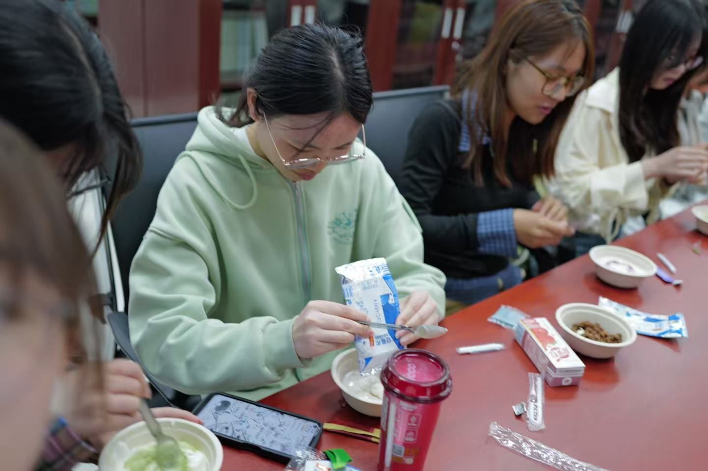 为帮助员工应对快节奏校园生活中的学业压力、人际关系等心理挑战,4月16日下午,体育365官网心理工坊第一期“酸奶碗DIY:治愈手作,甜暖心灵”活动在红色文献阅览室温馨开启。公司党委副书记赵海龙老师、团委书记郭忠義老师、党委组织员兼心理专干苗玉园老师与30位同学相聚于此,在主持人何雨轩的引导下,用创意与甜蜜编织了一段专属春日的温暖记忆。