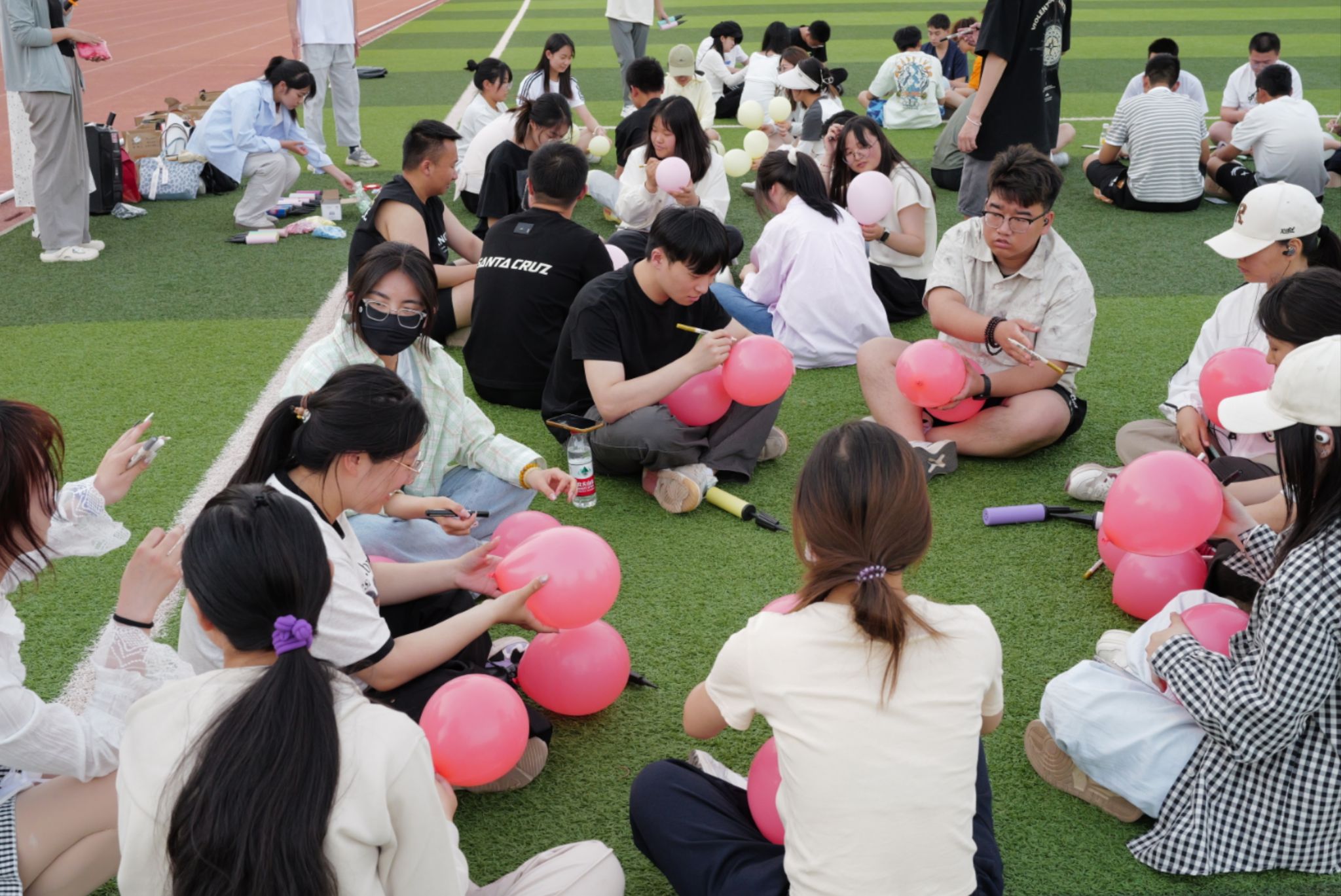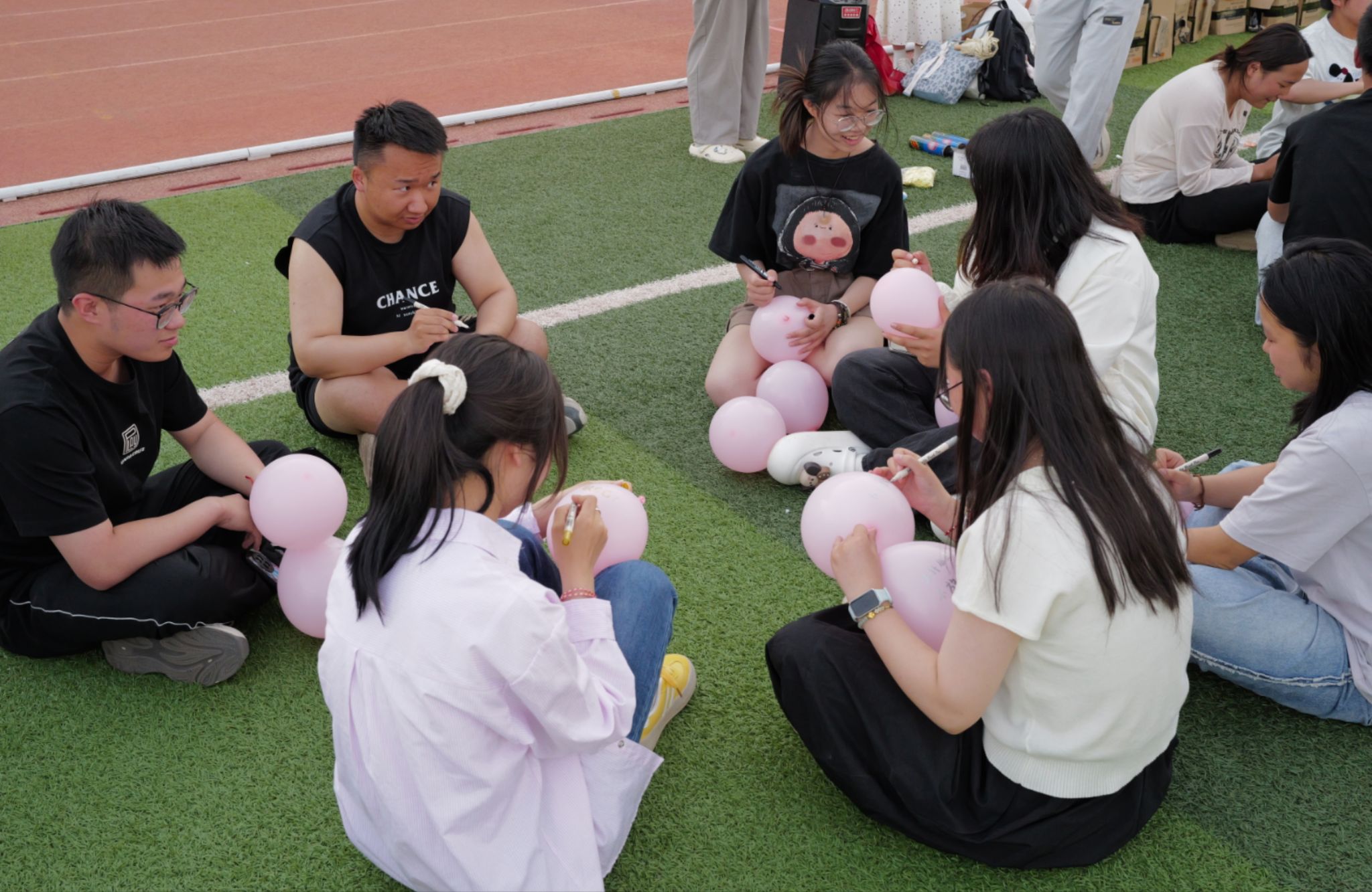 活动以“压力可视化、应对具象化”为设计理念,通过趣味对抗游戏实现心理赋能。在“烦恼上色”环节,同学们将学业竞争、职业规划等成长困惑以艺术化形式绘于气球,完成负面情绪的外化表达;赛制中“抗压达人”与“守护者”的角色分工,不仅考验团队协作能力,更隐喻个人成长与集体支持的辩证关系。特别是复活机制中融入的心理健康知识问答,将专业知识转化为趣味互动,实现“玩中学、学中悟”的育人目标。