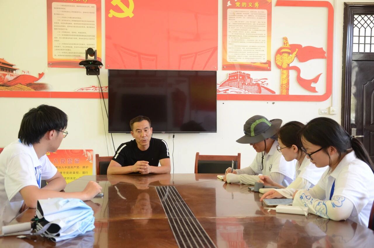 东赵村村支书赵波同志接受三下乡实践队采访,赵波同志简要介绍了东赵村的基本情况:东赵村农业种植以猕猴桃、阳光玫瑰等经济作物为主;面对队员们最关心的乡村振兴问题,赵波同志表示:村“两委”实行精准扶贫,推行网格化管理,目前成效显著。最后,赵波同志表达了对老员工下乡实践活动的热切期望,叮嘱团队深入乡村,走进田野,把调研做扎实。并且用自己的专业知识为东赵小学的员工们带来一个丰富饱满的暑期。