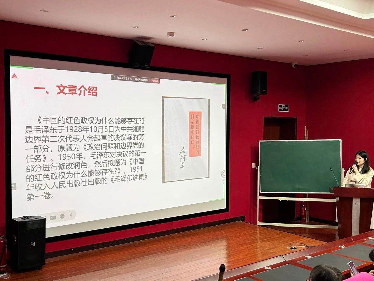 2024年10月30日,“马克思主义经典文献研读”系列第四十七期学术活动在体育365官网一楼报告厅举行。本次读书会分别围绕《共产党宣言》和《中国的红色政权为什么能够存在?》进行研讨和热议。2024级硕士研究生王雪、武荣荣、李辰然三位同学作报告分享,段学慧老师对同学们的报告内容进行了指导。