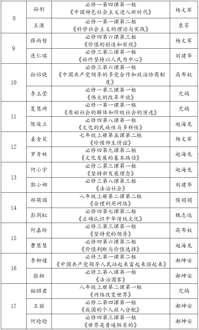 (1)初中政治课程内容: