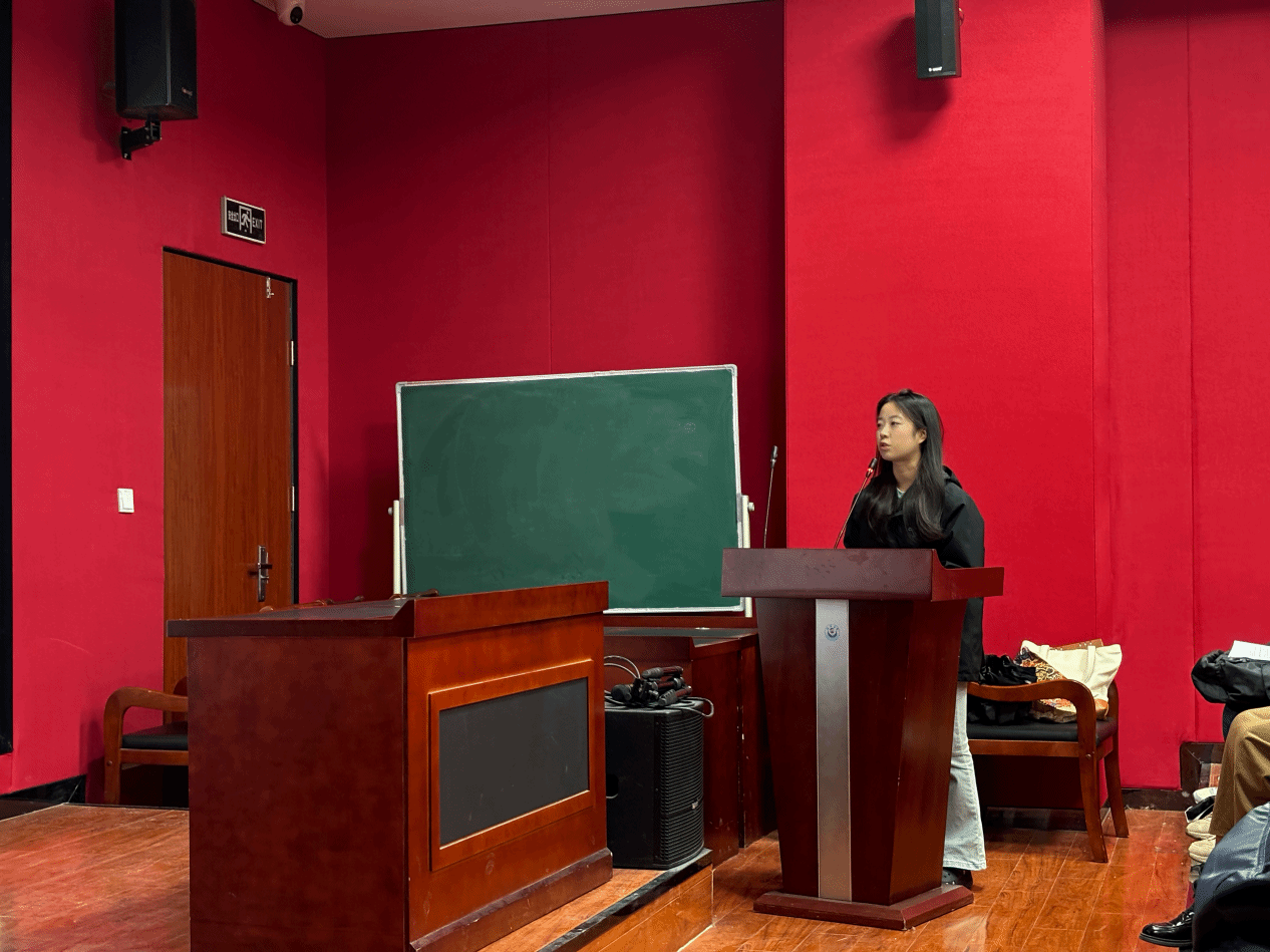 第一位导读人是水浩田同学,他从《中国革命和中国共产党》的写作背景、主要内容、理论价值与现实意义等几方面展开系统阐述,并将本文与《新民主主义论》进行了对比研究。首先,他从三个方面讲解了《中国革命与中国共产党》的写作背景,分别是抗日战争进入战略相持阶段,国共合作面临危机;国统区个人主义,一党专政盛行;中国革命面临理论困惑。其次,着重阐述了这篇文章的主要内容。本文以中国社会性质为立足点分析了中国革命的对象、任务、动力、性质和前途,并指出中国共产党要承担起领导中国民主主义革命和中国社会主义革命彻底完成的责任。紧接着,将《中国革命和中国共产党》与《新民主主义论》两篇文章进行了比较阅读,介绍了了两篇文章之间的关联并指出两篇文章在内容和侧重点方面的不同。最后,介绍了这篇文章的理论价值和现实意义。水浩田同学指出,本文具有指导中国革命走向胜利的行动指南、进一步丰富和发展了马克思主义学说的双重理论价值,以及要尊重农民的主体地位、要以自我革命推动党的建设、要始终坚持坚持实事求是的思想路线的现实启示。
