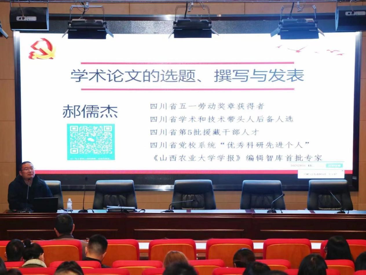 2023年4月8日晚,365体育马克思主义理论学术论坛第55期讲座成功举办。讲座邀请了中共四川省委省直机关党校郝儒杰副教授,郝老师围绕《人文社科类研究生如何撰写与发表高质量学术论文》的题目向体育365官网师生、兄弟公司师生分享了他的研究心得。讲座由体育365官网副经理刘建华主持。