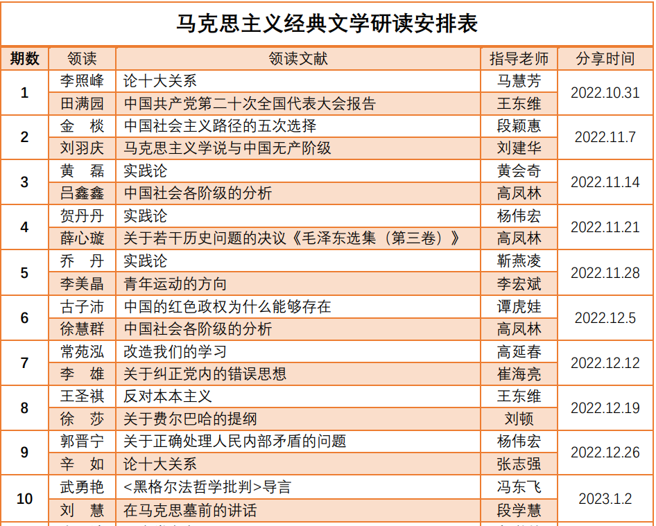 本次文献研读活动计划举办29期,公司举办此次研读活动,旨在引导2022级马克思主义理论专业研究生在新的历史条件下从整体上把握马克思主义的理论精髓与发展线索,理解新时代马克思主义的科学性、人民性、实践性和发展性等鲜明特征,扎实马克思主义理论专业的基础知识与文献功底。