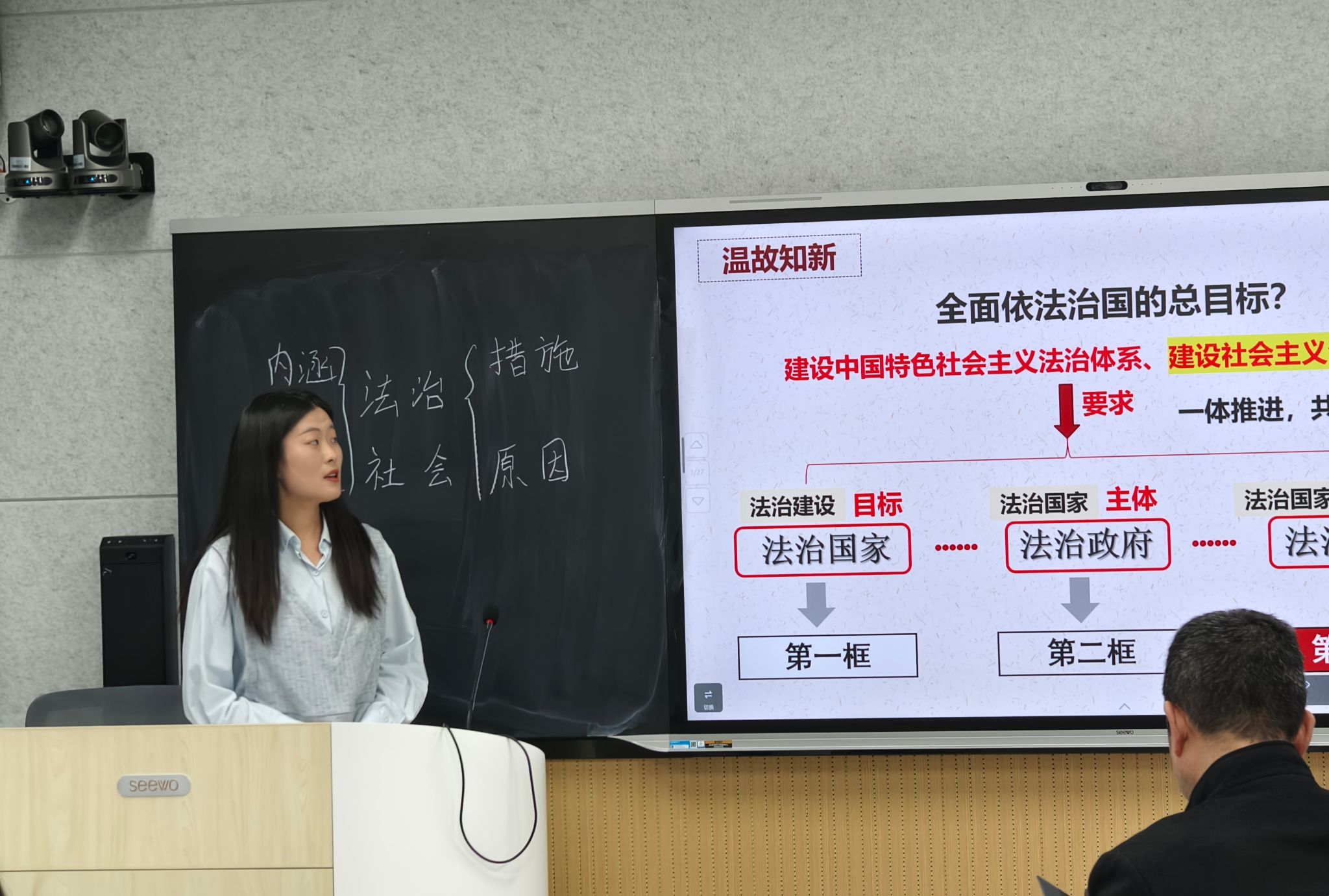 2025年3月26日,学科思政24全体同学于体育365官网202智慧教室开展了教学技能实训的第十三期活动。本次实训活动讲课人为罗青林和郭小娜两位同学。讲课的内容分别是高中必修四第九课第二框《文化发展的基本路径》和高中必修三第八课第三框《法治社会》。