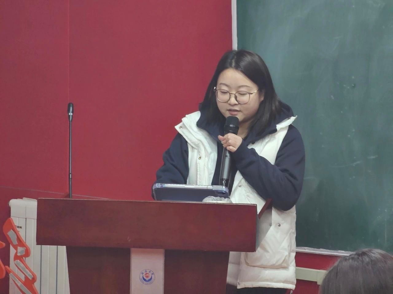 第一位分享人张珂煜,她从创作背景、主要内容、文献综述、当代启示四个方面来解析《关于正确处理人民内部矛盾的问题》一文。