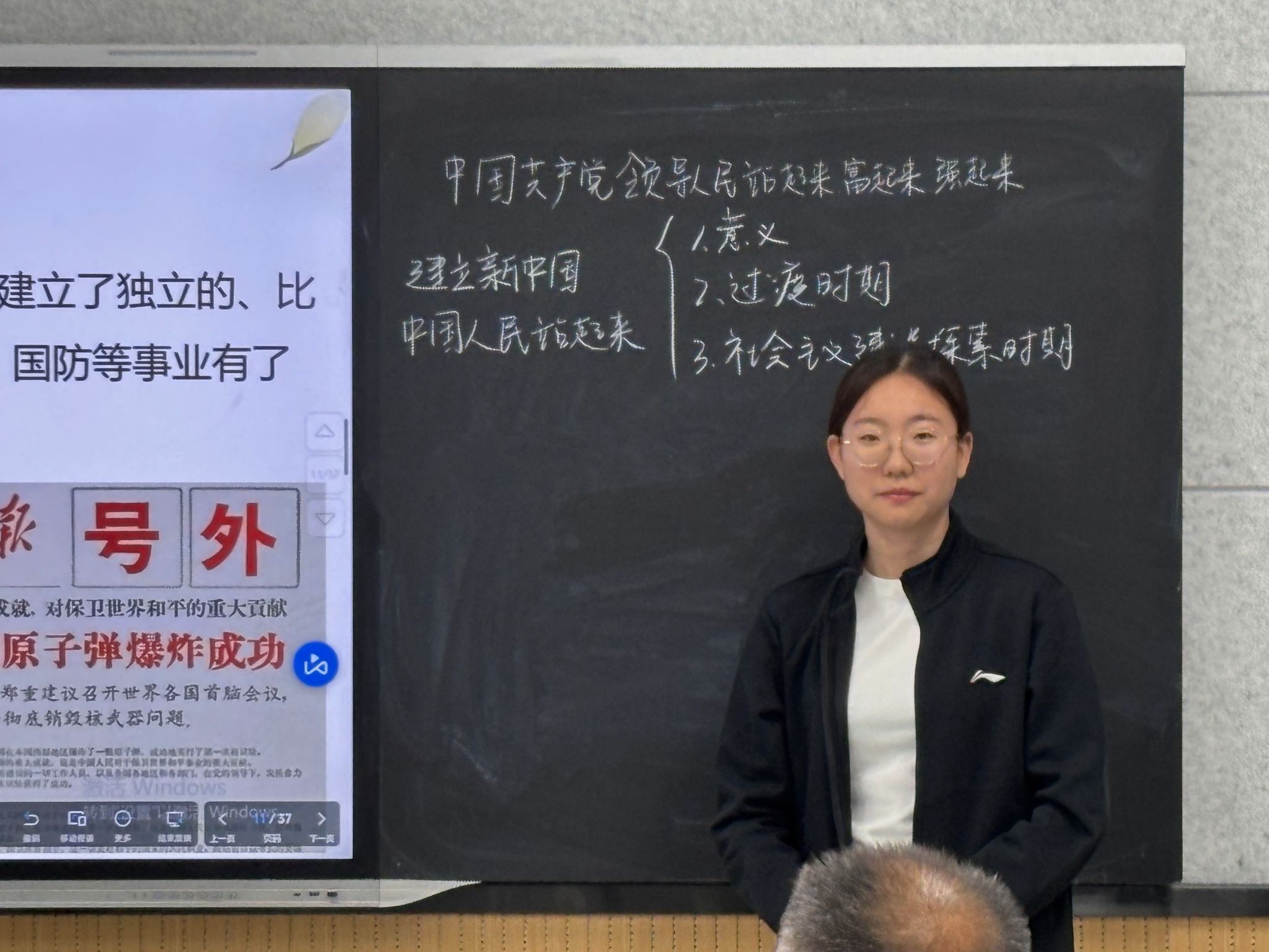 在授课过程中,李柳瑾同学创新采用“一例到底”的教学方法,以战斗机技术发展为线索,串联起三个关键历史阶段:站起来(1949-1978年):结合新中国成立初期的国防建设,阐释中国共产党带领人民实现政治独立与经济基础重建的意义;富起来(1978-2012年):通过改革开放后国防科技的快速发展,说明经济腾飞为综合国力提升奠定的基础;强起来(2012年至今)以歼-20等先进装备为例,分析新时代中国在科技、军事等领域的全球影响力。