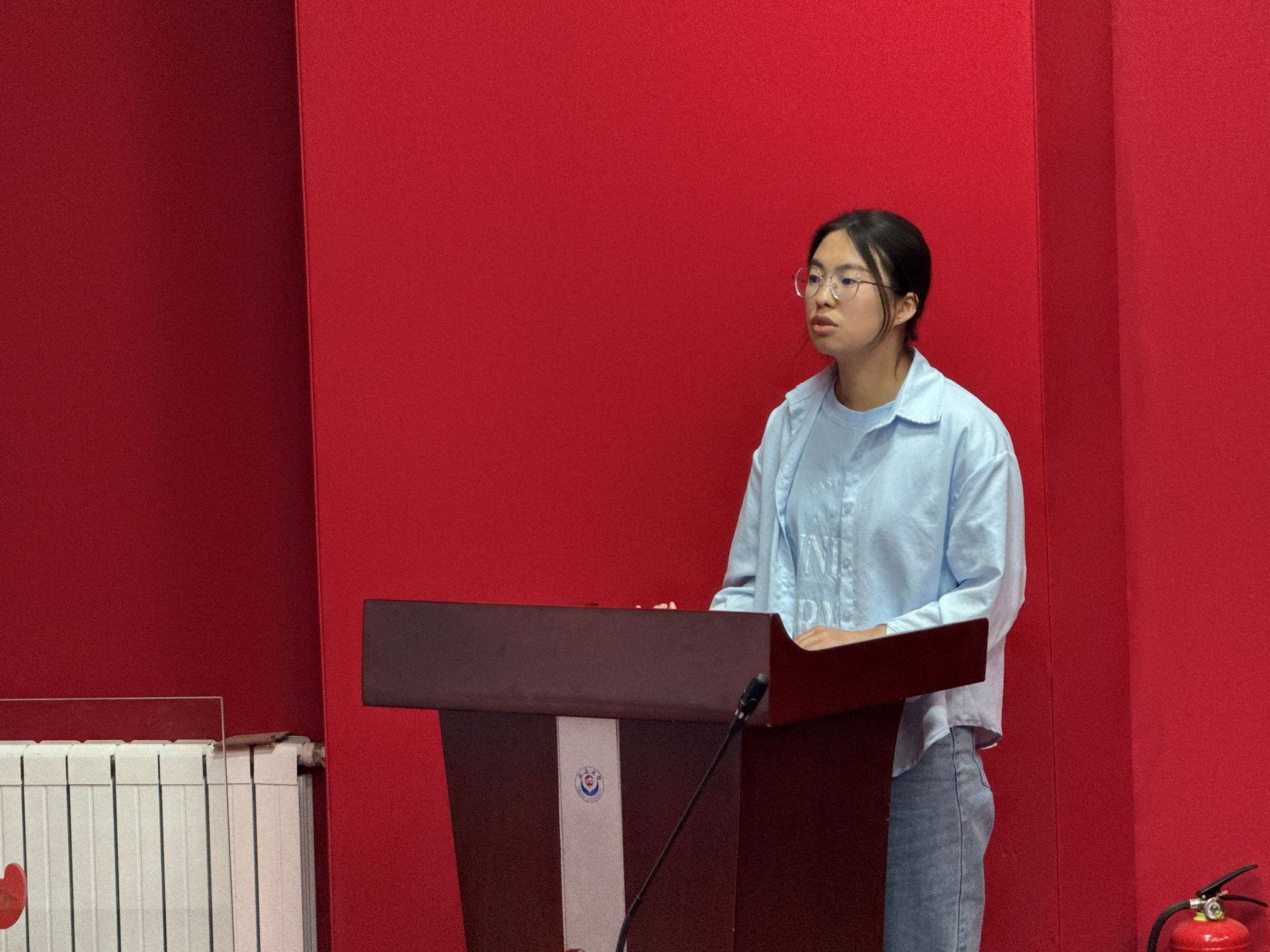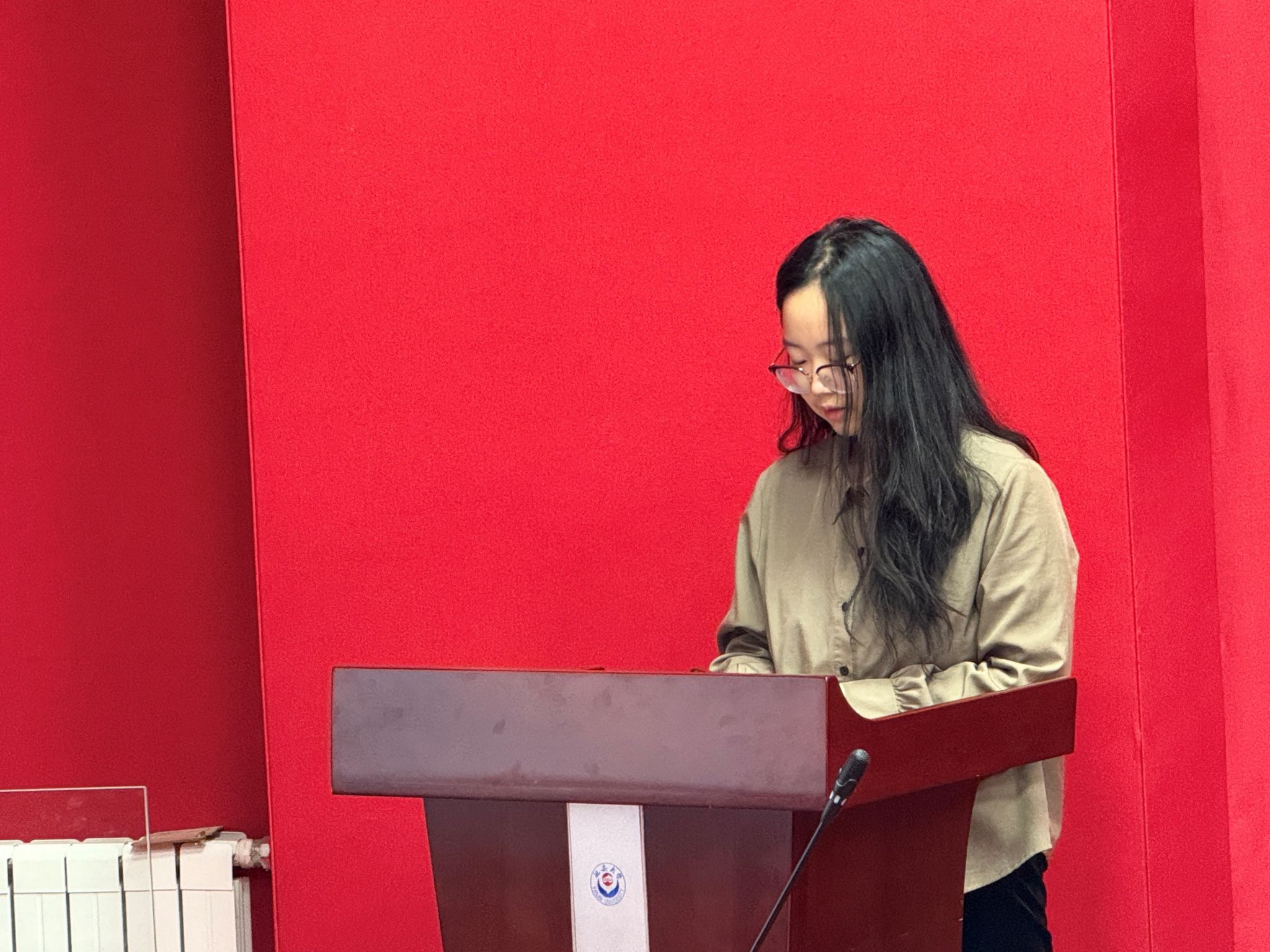 第一位分享人王仁笑对《<黑格尔法哲学批判>导言》进行了阅读分享。她主要从写作背景、文章内容、文献综述、启示感悟四个方面展开阐述。首先她针对文献的写作背景进行分析,介绍了写作背景、写作动机与写作原因。之后,她阐明了文章的主要内容。这篇经典文献分为三个主要部分,即宗教批判、对黑格尔法哲学的批判和无产阶级革命。文章论证了宗教批判的重要性以及不仅仅要批判宗教,更要批判现实生活中的问题。第二部分客观论述了当时德国的现实情况。第三部分论述了如何解决现实问题。随后,她分享了相关文献,探讨文章中蕴含的批判性思维的现实意义,以及文章对于思想政治教育工作的启示。最后,她分享学习这篇经典文献的所思所感:我们应当努力学习专业知识,丰富自己的专业知识储备,坚定信念,养成深度思考问题的习惯,培养批判性思维。